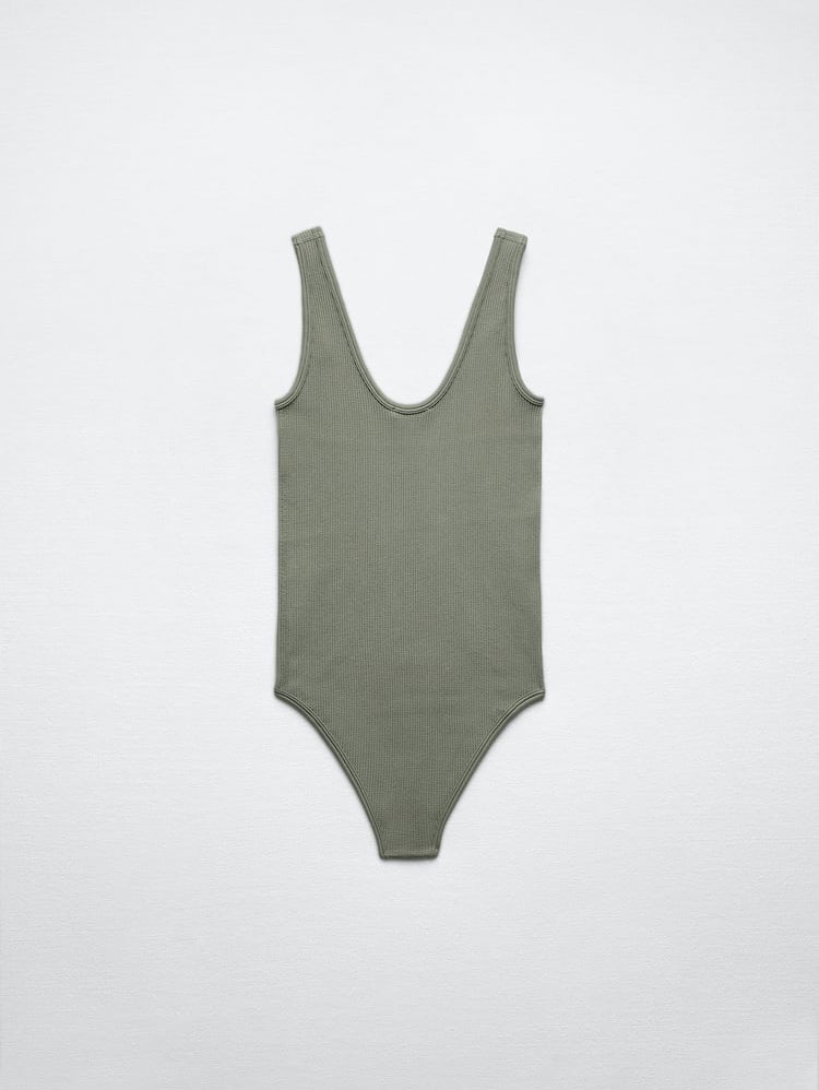 Body, jossa pyöreä pääntie ja leveät olkaimet.